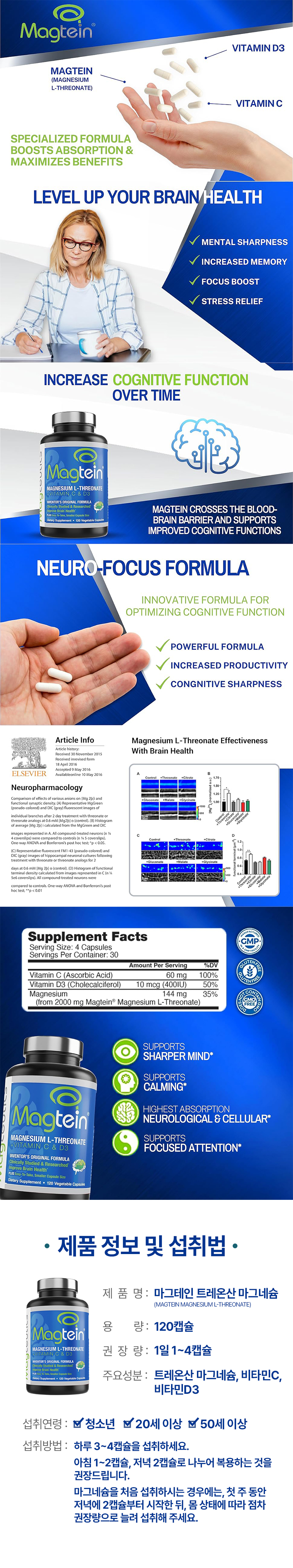 [해외]마그슈틱스 마그테인 트레온산 마그네슘 120캡슐 비타민C D3