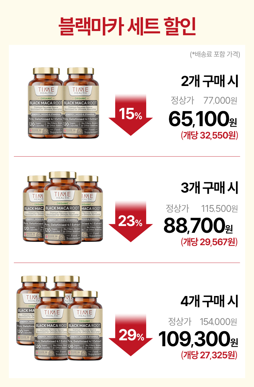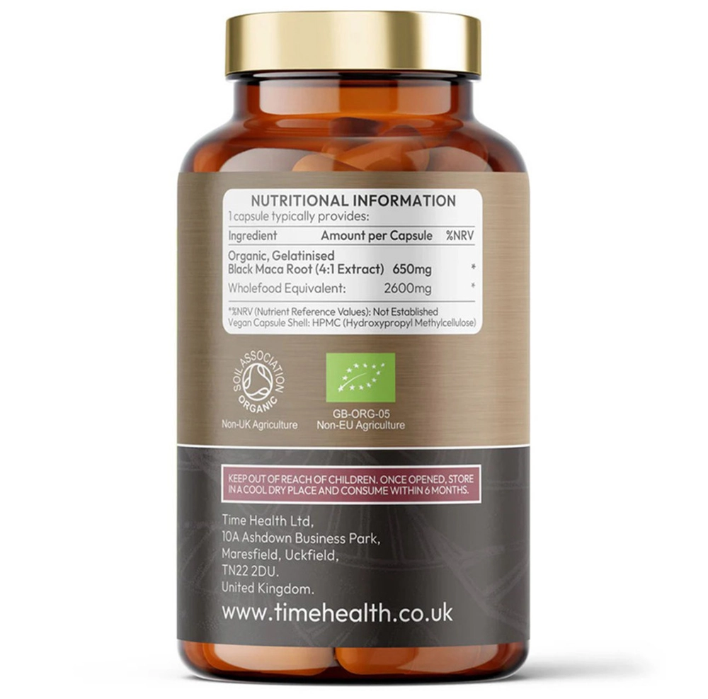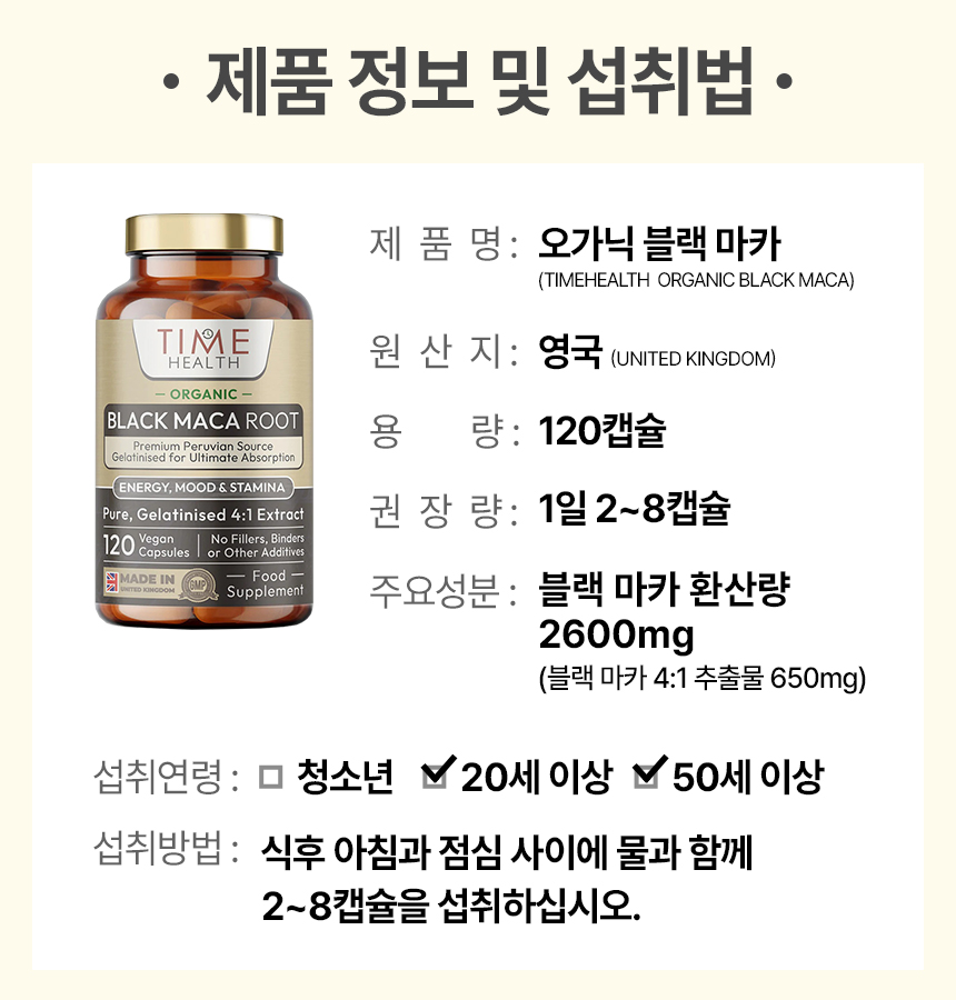 [해외] 타임헬스 오가닉 블랙마카 2600mg 120캡슐 4:1 농축추출물 650mg